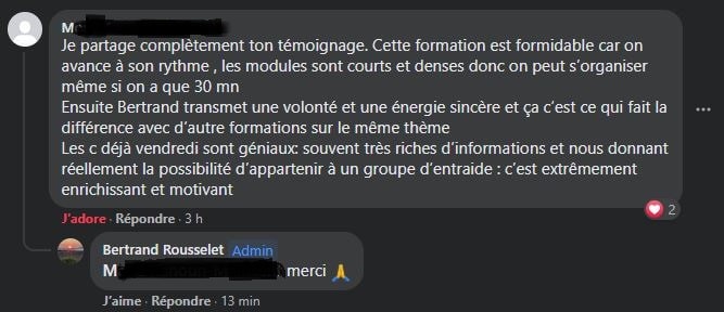 Echanges et suivi Emails + Accès à la communauté Facebook privée pendant 1 an :